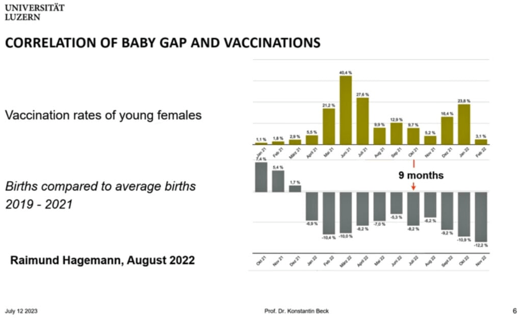 He found that miscarriages and stillbirth rates in 2022 corresponded directly to COVID-19 vaccination among pregnant women in Switzerland nine months earlier.