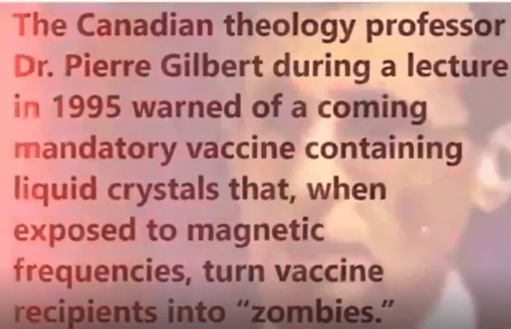 Gilbert says: “In the biological destruction there are the organized tempest on the magnetic field. What will follow is the contamination of the bloodstreams of mankind creating intentional infections. This will be enforced via laws, that will make vaccinations mandatory. These vaccines will make possible to control people. The vaccines will have liquid crystals ( my comment aka quantum dots) that will become hosted in the brain cells, which will become micro receivers of electromagnetic fields where waves of very very low frequency will be sent. And through these low frequency waves people will be unable to think, you’ll be turned into a Zombie. Don’t think of this as a hypothesis… it has been done. Think of Ruanda.”