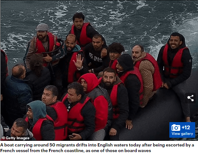 The migrants left early this morning, with pictures showing a French naval vessel following it out of the country’s territorial waters. Once the group reached British maritime territory they were picked up by a Border Force patrol boat.