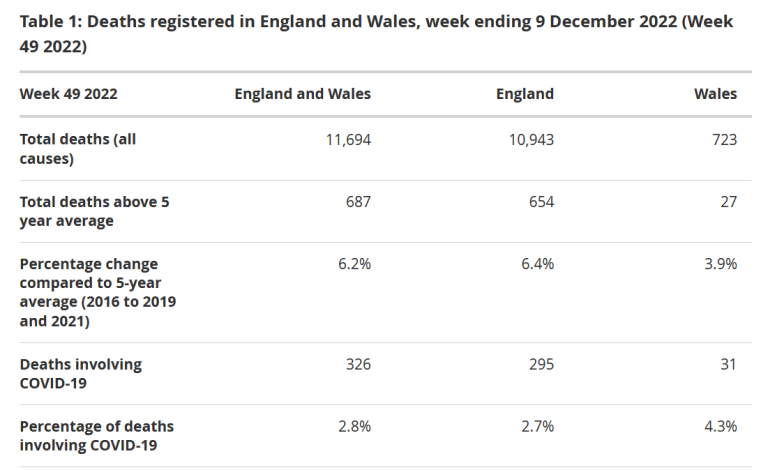 Official data reveals that from April 2022 through to December 2022, 407,910 deaths occurred, with 47,379 excess deaths against the 2015-2019 five-year average.