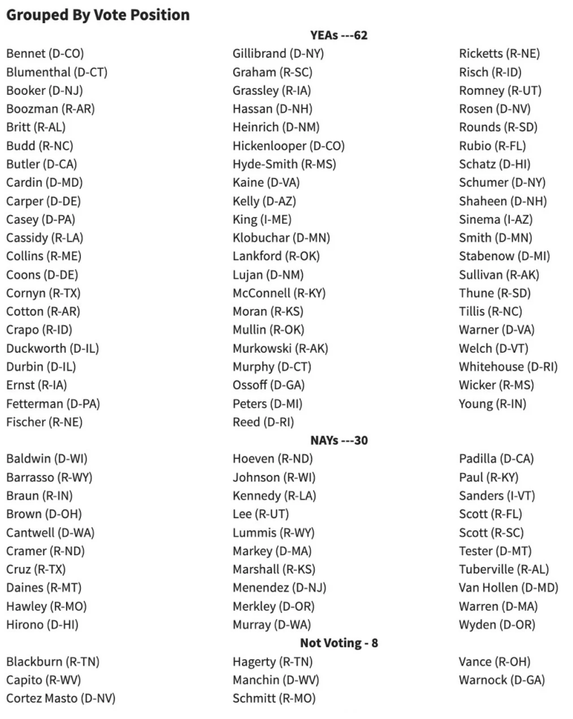 A breakdown of which Senators voted in favor (or against) the controversial FISA renewal.